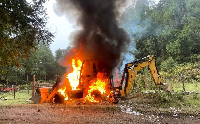 Una retroexcavadora, perteneciente al Departamento de Caminos de la Municipalidad de Panguipulli, fue quemada la madrugada de este domingo por desconocidos en el sector de Pullinque Bajo, a la altura del Salto del Toro, en la ruta CH-201 que conecta Panguipulli con Coñaripe.