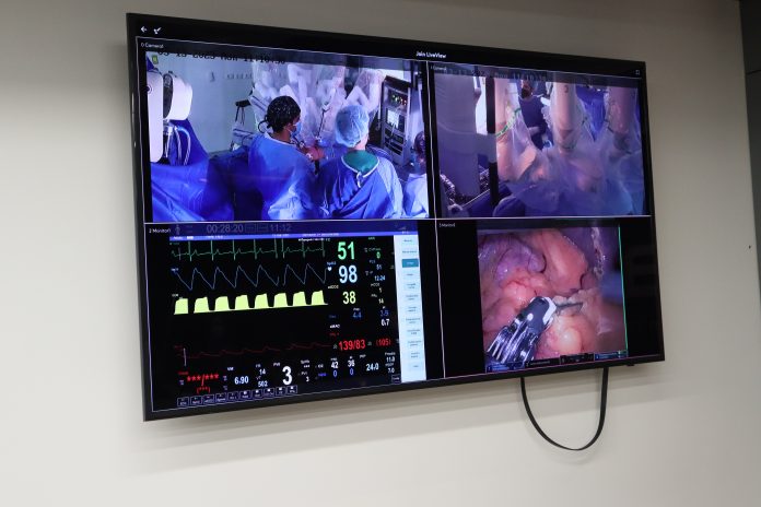 Durante el mes de marzo se realizó la transmisión, en la que autoridades de FALP, NTT DATA, ALLM y la Subsecretaría de Telecomunicaciones, pudieron observar una Nefrectomía Parcial Robótica. A través de diversas pantallas, los asistentes vieron la intervención en vivo y en directo. Imágenes de pabellón, pantallas con signos vitales y el accionar del Robot Da Vinci Xi, con una alta calidad de imagen, permitió visualizar nítidamente todos los detalles de la cirugía con solo un segundo de desfase.