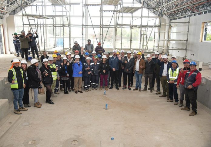 En el recorrido conocieron detalles de la iniciativa, que a la fecha alcanza un 70% de avance. El proyecto considera una superficie total de 892m2, la construcción de una sala polivalente, piscina terapéutica y talleres de estimulación cognitiva. La obra de estructura metálica y hormigón armado, cuenta con criterios de eficiencia energética aplicado a la implementación general del edificio y consideran principalmente la envolvente térmica y climatización de alta eficiencia.
