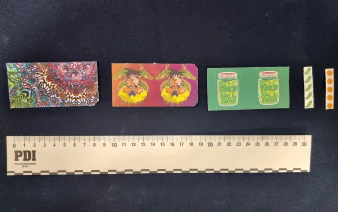 “Al momento de la detención se le pudo incautar 161 dosis de LSD, las que se suman a las ya interceptadas en el Aeropuerto Arturo Merino Benítez en encomiendas a su nombre, ascendiendo a un total de 261 dosis con un avalúo cercano a los 4 millones de pesos. Además, se le incautaron 40,33 gramos de cannabis sativa”, agregó el comisario.