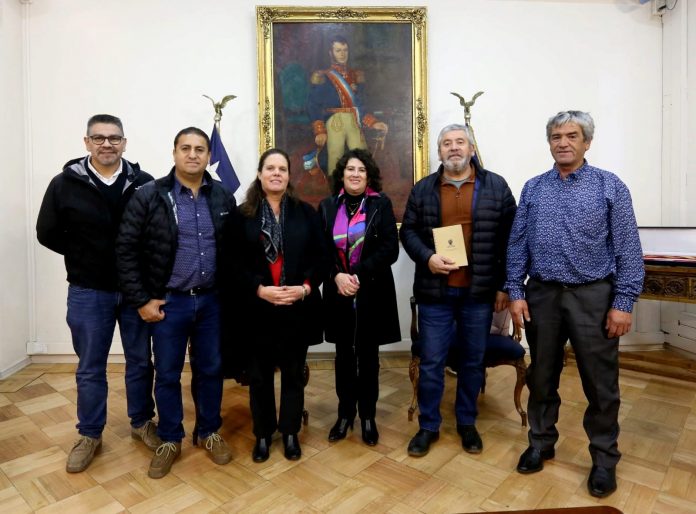 Una satisfactoria reunión sostuvieron dirigentes de la pesca artesanal de la Región de Los Ríos en el Ministerio de Defensa junto a la diputada Ana María Bravo, Marcelo Soto Castillo presidente de la CONFEPACH (Confederación Nacional de Federaciones de Pescadores Artesanales de Chile), Luis Ortiz Ramírez presidente de la FEPACOM, Néstor Pacheco presidente de FEDARPEL, Marco Ide Mayorga presidente de la FIPASUR y la jefa de la cartera de Defensa, Maya Fernández Allende.