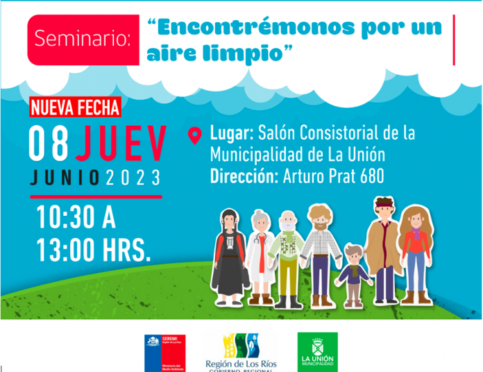 Por medio de un comunicado oficial, la Secretaría Regional Ministerial del Ministerio del Medio Ambiente de la región de Los Ríos informó que, por razones de fuerza mayor, deberán reprogramar el seminario “Encontrémonos por un aire limpio” que se realizaría este jueves 1 de junio a las 10:30 horas en el Salón Consistorial de la comuna de La Unión.