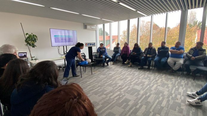 Cómo actuar ante una persona que se encuentra sufriendo de un paro cardíaco o que es víctima de un accidente como cortes o quemaduras fueron algunos de los conocimientos que recibieron 35 representantes de empresas socias de la Cámara Chilena de la Construcción sede Valdivia que participaron en un curso básico de primeros auxilios. La actividad fue coordinada por la Comisión de Seguridad y Salud Laboral de la sede y por Mutual de Seguridad y fue realizada en el auditorio de la sede del gremio, oportunidad en la que trabajadores y socios de 16 empresas aprendieron a ejecutar maniobras básicas, como reanimación cardiopulmonar (RCP).