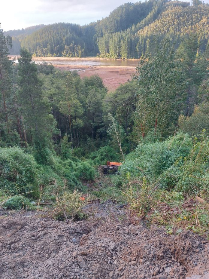 De acuerdo a lo indicado por el jefe de la subcomisaría Oscar Cristi Gallo de Valdivia, capitán Gonzalo del Valle, “por causas que se investigan habría perdido el control de este [vehículo], transportando material y cayendo de una quebrada de alrededor de 50 metros”. Además, señaló que hasta el momento se desconoce la identidad del conductor y la patente del camión debido a la complejidad del terreno.