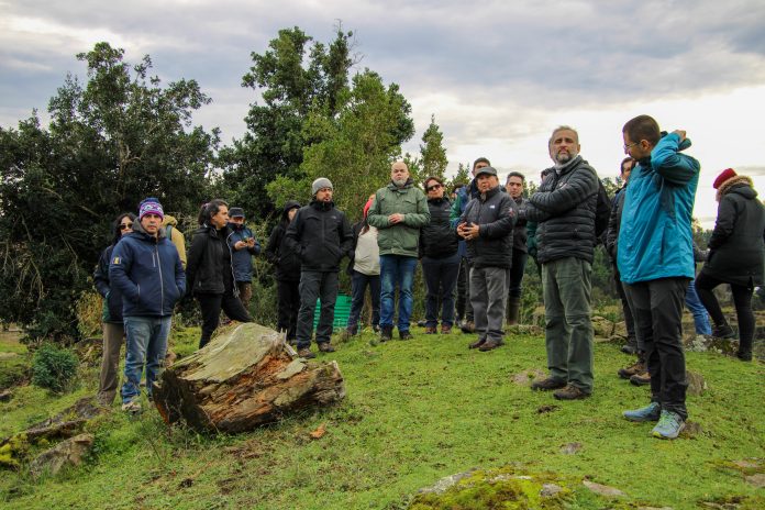 El proyecto piloto denominado “Recuperación del Bosque Nativo en la Isla Huapi”, en la comuna de Futrono, desde el año 2021 ejecuta actividades de forestación y restauración de bosque nativo en siete predios de comuneros y comuneras mapuche huilliche, trabajando en alrededor de ocho hectáreas. Es así, que en esta visita, la Delegación de FAO, junto a funcionarios y funcionarias de CONAF, compartieron tanto con integrantes de las familias beneficiadas como con algunos/as, lideres/as y representantes de Isla Huapi. Además, recorrieron tres predios, en los cuales se han realizado actividades de restauración y forestación, para conocer en terreno estas acciones, tanto desde una perspectiva técnica como socio-ambiental.