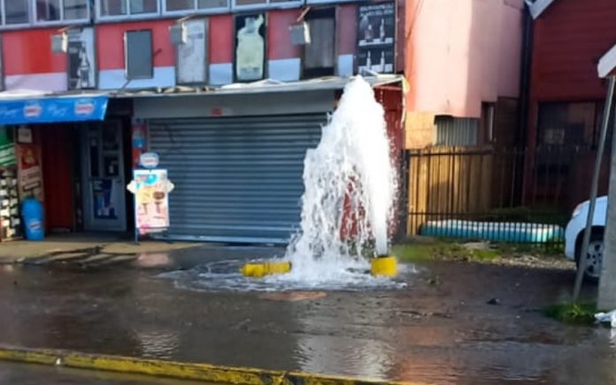 Desconocidos chocaron y destruyeron este sábado un grifo en avenida Picarte, en Valdivia. Desde Aguas Décima llamaron a cuidar estos dispositivos.