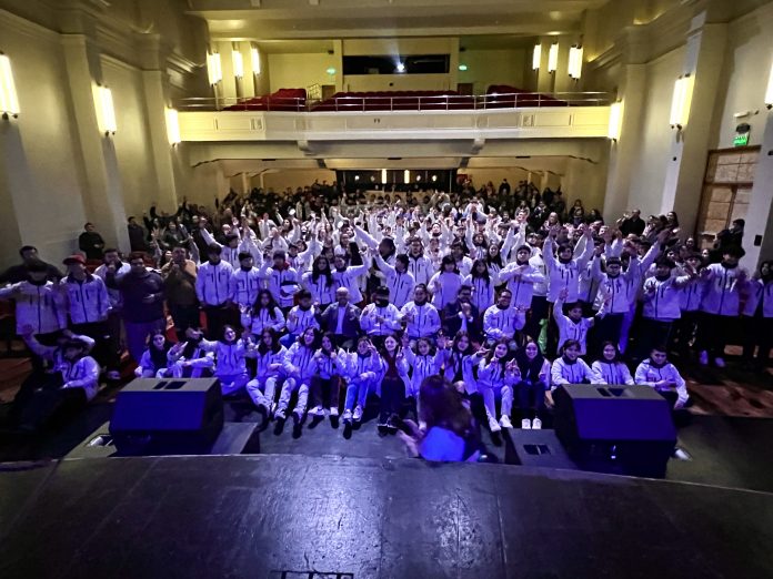 Representantes de establecimientos educacionales de las comunas de La Unión, Lanco, Los Lagos, Mariquina, Paillaco, Panguipulli, Río Bueno y Valdivia, fueron convocados al Teatro Cervantes a recibir la indumentaria con la que representarán los colores de la región. En una actividad llena de alegría y con un aporte musical a cargo de la Big Band Bach, del Colegio Bicentenario de Música Juan Sebastián Bach, de Valdivia, se presentó a los grupos de deportistas y sus técnicos.