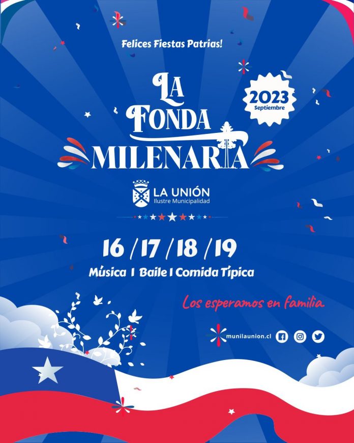Para el alcalde de La Unión, Andrés Reinoso, esta es una gran oportunidad para disfrutar de estas fiestas en la misma comuna “Quiero invitar a todos los vecinos a nuestra Fonda Milenaria y todas las actividades programadas para estas fiestas patrias, esperar que todos puedan acercarse a la plaza de la Concordia y disfrutar de esta cartera de artistas locales, regionales y nacionales que participarán de nuestras fiestas patrias “.