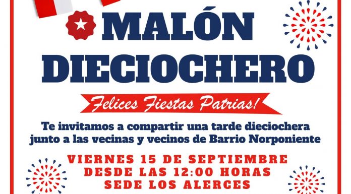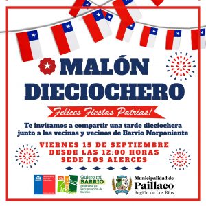 El Barrio Norponiente de Paillaco dará inicio a las celebraciones de Fiestas Patrias con un gran “Malón comunitario”, que tiene como principal objetivo reunir a los vecinos en una actividad familiar, donde los asistentes podrán compartir una tarde entretenida.