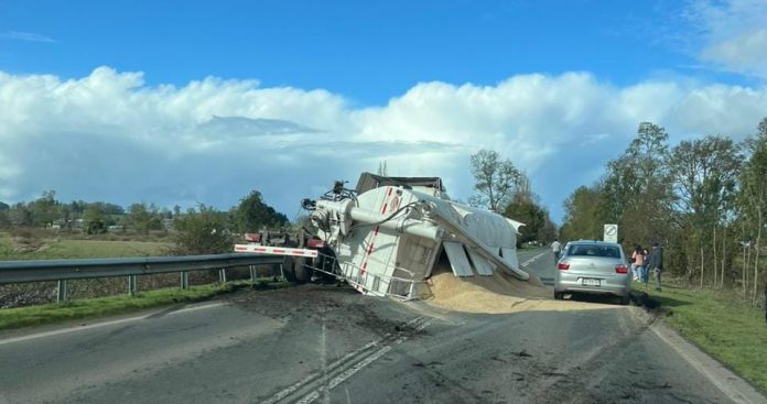 Un nuevo accidente de tránsito se registró esta tarde en la ruta que une la ciudad de La Unión con la localidad de Puerto Nuevo, específicamente en el Sector Los Chilcos. En el lugar, un camión colisionó violentamente contra una barrera de contención, causando la caída de parte de su carga sobre la vía. En tanto el conductor, quien era el único ocupante del vehículo, resultó ileso en el accidente.