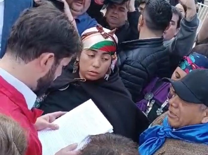 La Machi Millaray Huichalaf, en calidad de líder espiritual y defensora de la tierra, encabezó la delegación que presentó la carta al Presidente Boric.