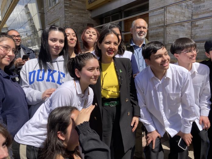 La secretaria de Estado se dio el tiempo para saludar personalmente a las y los estudiantes de los colegios, a quienes agradeció sumarse a la ceremonia. “Ustedes también son parte de este hito tan importante para nuestro país a través de sus expresiones artísticas y de sus talentos”, pronunció.