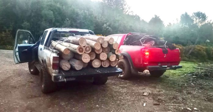 Al respecto, el subprefecto Cristian Muñoz, del equipo especial de Sustracción de Madera detalló que “los detenidos ingresaron a un predio donde talaron una importante remesa de madera de las especies pino radiata y eucaliptus, los que cargaban en dos camionetas y posteriormente las trasladaban hasta domicilios de la comuna de Corral. Se hace presente, que esta es la segunda detención que se efectúa este mes en el marco de esta investigación por parte de los detectives de la PDI, y se destaca que el daño causado en el interior del predio es considerable.”