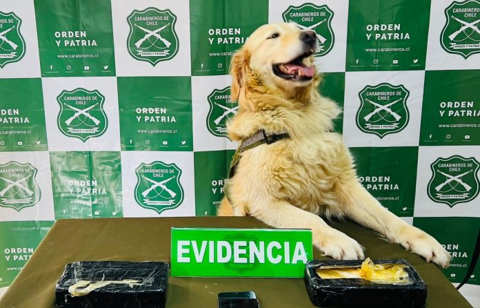 La can detectora “Gemma”, realizó el hallazgo en el km 869 de la Ruta 5 Sur, en una fiscalización junto al personal de la Tenencia de Carreteras de la capital regional.