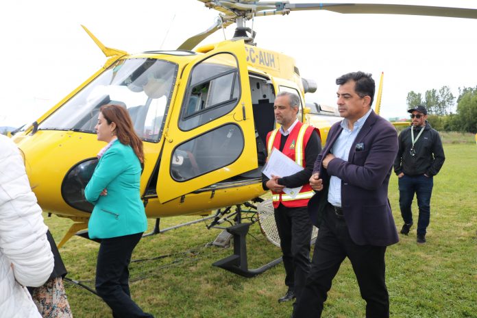 En dependencias del Aeródromo Las Marías, comuna de Valdivia, se encuentra apostado y operativo el Helicóptero AS350 B3, desde el 01 de diciembre y por 100 días aproximadamente. Así lo dieron a conocer las autoridades, en una actividad desarrollada esta tarde y que contó con la presencia de la Ministra de Bienes Nacionales, Marcela Sandoval; el Delegado Presidencial, Jorge Alvial; la Senadora María José Gatica; el Diputado Marcos Ilabaca; la alcaldesa de Valdivia, Carla Amtmann; el director regional de CONAF, Arnoldo Shibar, entre otros.