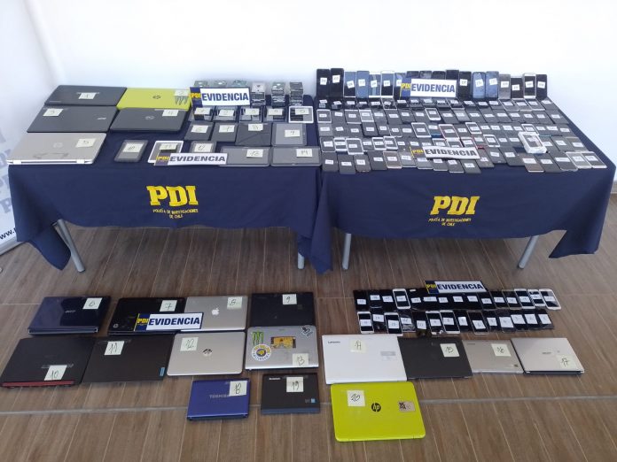 Detectives de la Brigada Investigadora de Robos BIRO de la PDI Valdivia, detuvieron este miércoles a un hombre mayor de edad, de nacionalidad haitiana, por el delito de receptación, recuperando más de cien equipos electrónicos entre celulares, notebooks, tablets y discos duros que el detenido mantenía en su domicilio con el pretexto de efectuarle reparaciones, sin lograr acreditar origen ni propiedad.