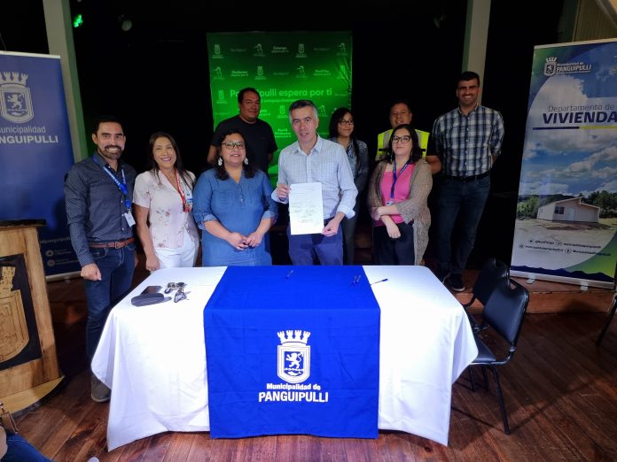 Este viernes la Municipalidad de Panguipulli a través de su Departamento de Vivienda, realizó la ceremonia de firma de acta de entrega de terreno del Subsidio Decreto Supremo N°10, Construcción en Sitio Residente, entre Serviu, Egis Construyendo Chile, empresa constructora y la presidenta del Comité de Vivienda Brisas del Volcán, con la cual se construirán 40 casas en diversos sectores rurales de la comuna.