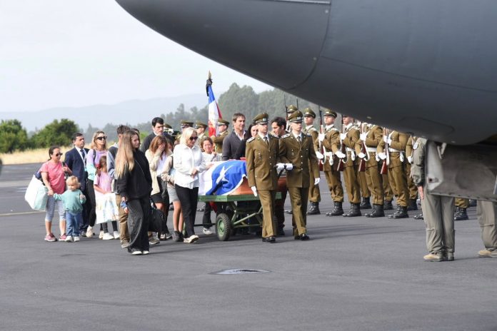 El féretro llegó acompañado por la ex primera dama Cecilia Morel, además los hijos, nietos y otros familiares del ex Mandatario, luego de lo cual un avión de la Fuerza Aérea de Chile (FACh) inició el traslado a la región Metropolitana.