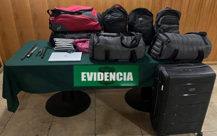 En el mismo domicilio de la aprehensión, personal policial encontró los bolsos, mochilas, maleta, notebook y otras especies menores sustraídas, además de una serie de herramientas para cometer delitos.