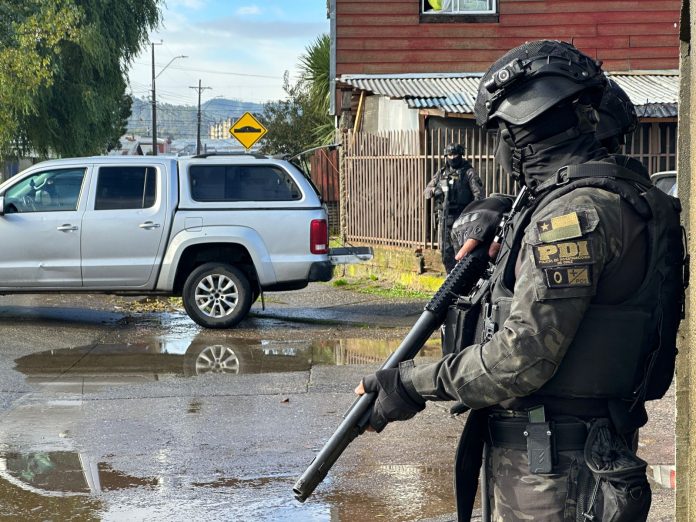 Con la presencia de alrededor de un centenar de detectives, a esta hora personal de la PDI desarrolla un masivo operativo policial en la población Norte Grande II del sector de Las Ánimas, en Valdivia.