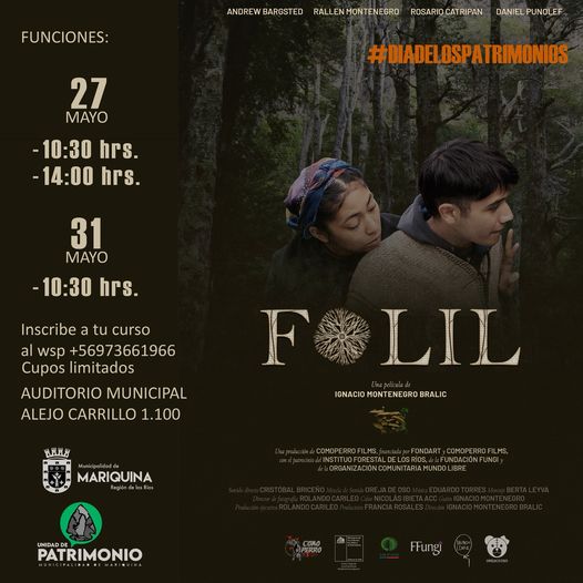 En el marco del Mes de los Patrimonios, en la comuna de Mariquina se llevará a cabo la proyección del documental “Folil”, una obra que invita a reflexionar sobre nuestra relación con la naturaleza.