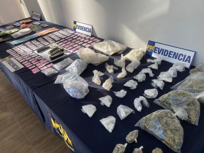 Detectives decomisaron 2 kilos 700 gramos de drogas, entre cocaína base, clorhidrato de cocaína, cannabis sativa y ketamina, todo avaluada en alrededor de 40 millones de pesos. También incautaron un arma, municiones, un vehículo, dinero en efectivo, y otras especies.
