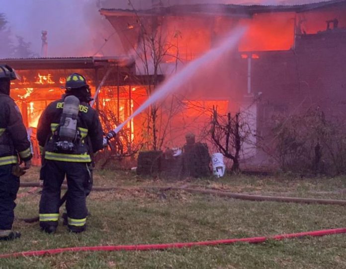 Un incendio consumió por completo una vivienda en el condominio Miraflores de Valdivia la mañana de este domingo.