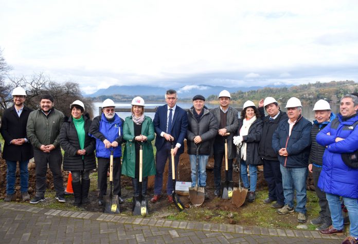 Con el lago Panguipulli, de fondo autoridades y vecinos pusieron la primera piedra del proyecto que permitirá renovar el segundo tramo de la costanera de la comuna, iniciativa financiada y ejecutada por el Ministerio de Obras Públicas, a través de su Dirección de Obras Portuarias, con una inversión de 2.613 millones de pesos.