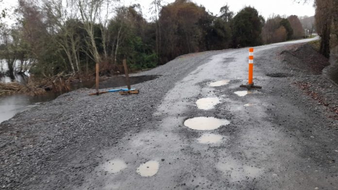 Durante la noche de este miércoles, la Dirección de Vialidad del Ministerio de Obras Públicas (Mop) instruyó el cierre preventivo del puerto de Trumao debido a una serie de socavones que se generaron a un costado del camino de acceso al lugar, debido al aumento de caudal del río Bueno.