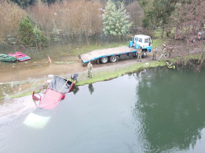 Personal del Grupo de Operaciones Policiales Especiales (GOPE) de Carabineros de Los Ríos trabajó durante la mañana de este martes en la extracción del vehículo que la noche de este lunes cayó a las aguas del río Bueno, y en que fallecieron dos personas.