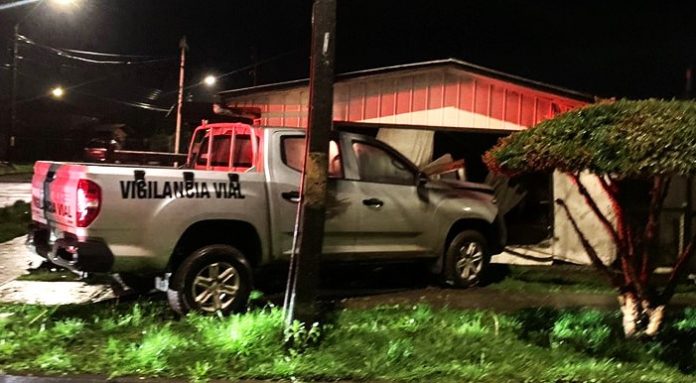 Esta mañana, un vehículo de seguridad vial impactó contra una vivienda en el sector sur de Paillaco, dejando considerables daños materiales.