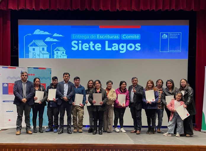 Con sus escrituras en la mano, 150 familias del proyecto habitacional Siete Lagos, se convirtieron en dueños legales. Ello tras un año desde la entrega de llaves y una inversión de 5.313 millones de pesos del Ministerio de Vivienda y Urbanismo (Minvu), que permitieron concretar el sueño de la casa propia para este grupo de vecinos y vecinas de Lanco.