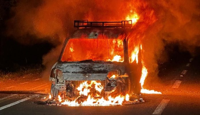 Vehículo se incendió esta madrugada en la ruta Paillaco-Pichirropulli