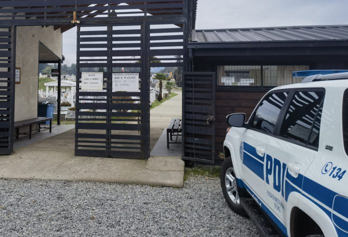 Detectives de la Brigada de Homicidios y peritos del Laboratorio de Criminalística Regional Valdivia investigan el hallazgo de osamentas humanas, ubicadas al interior de uno de los patios del Cementerio Municipal N° 1 de Los Lagos.