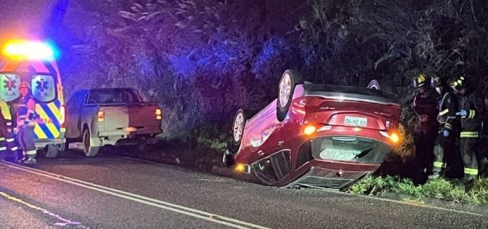 El accidente reportado pasado las 20 horas de este sábado, involucró a un vehículo particular, el cual por causas que son materia de investigación volcó a un costado de la Ruta T-206.