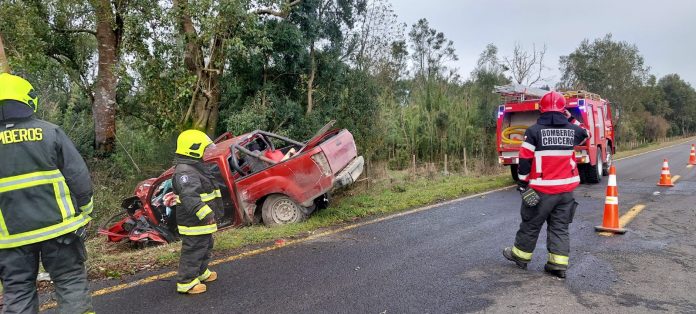 Bomberos de Crucero acudió al lugar del accidente para apoyar al Cuerpo de Bomberos de Puyehue en las labores de rescate, y según los primeros informes, el conductor perdió el control del vehículo por causas que aún se desconocen, provocando que la camioneta impactara violentamente contra un costado de la ruta.