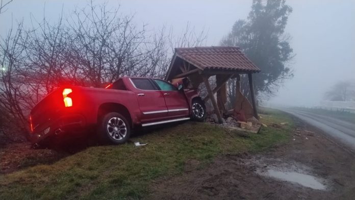 En horas de la mañana de este lunes, un vehículo particular colisionó con una garita en la localidad de Las Mercedes, camino a Cudico, a la altura de la lechería del sector.