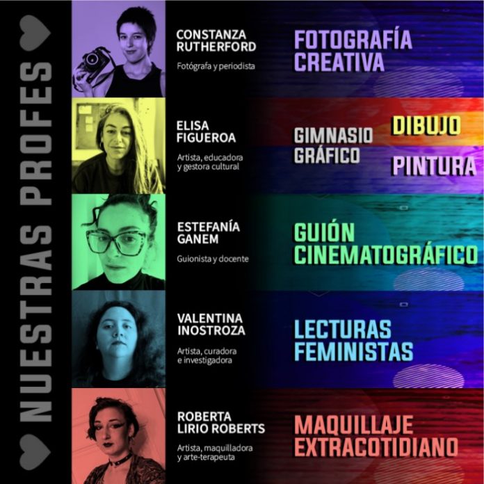 Este año, la programación ofrece una amplia gama de disciplinas para explorar: desde la fotografía creativa con Constanza Rutherford hasta la introducción al guión cinematográfico con Estefanía Ganem, pasando por el taller “Lecturas feministas: Conjurar otros mundos posibles” de Valentina Inostroza, los gimnasios gráficos de pintura y dibujo con Elisa Figueroa y el taller “Maquillaje extracotidiano y monstruosidad” impartido por Roberta Lirio Roberts.