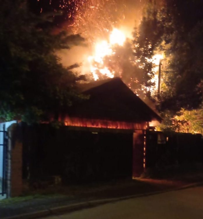 Las llamas consumen la estructura en fase de libre combustión, con alto riesgo de propagación a inmuebles aledaños.
