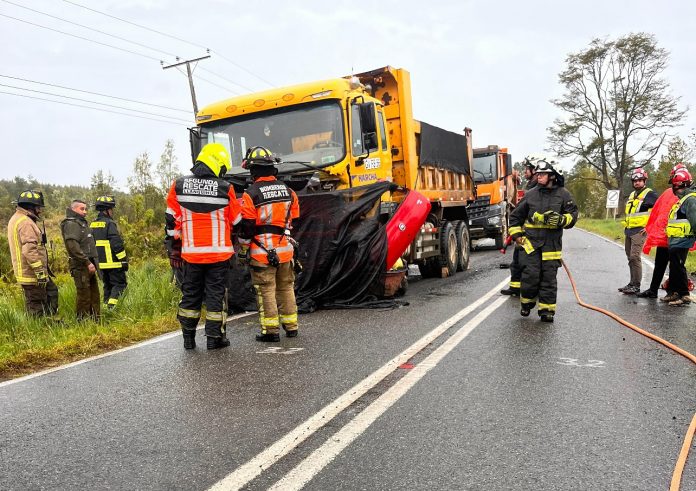 De acuerdo a los primeros informes, el conductor del automóvil se encontraba atrapado al interior del vehículo y los bomberos trabajan intensamente para proceder con el retiro del cuerpo.