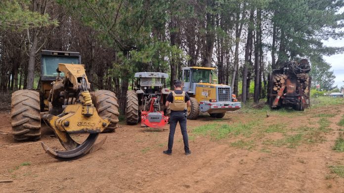 Entre las especies incautadas figuran dos camiones (uno de ellos con grúa autocargable), dos motosierras, un tractor, un cargador frontal, un skydder y una camioneta con carro. Además, se logró la recuperación de los árboles talados, algunos ya trozados y cargados en uno de los camiones.