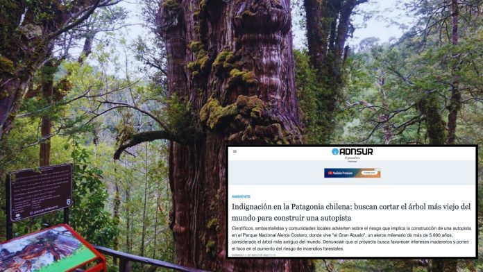 Una nota publicada este domingo 11 de mayo por el medio argentino ADNSUR, con sede en Comodoro Rivadavia (Chubut), generó revuelo al afirmar que el Gobierno de Chile pretende talar el “Gran Abuelo”, el alerce milenario ubicado en el Parque Nacional Alerce Costero, para dar paso a la construcción de una carretera.