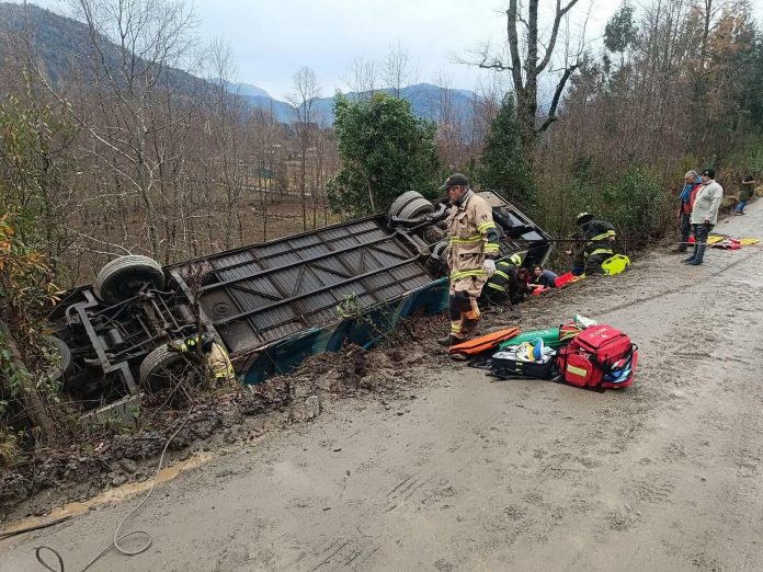 Durante la mañana de este sábado 14 de junio, se registró un grave accidente en el sector Carririñe, camino a las Termas Manquecura, en la localidad de Liquiñe, comuna de Panguipulli. Según información preliminar, un bus que transportaba a un grupo de adultos mayores provenientes de Valdivia volcó al llegar a su destino turístico.