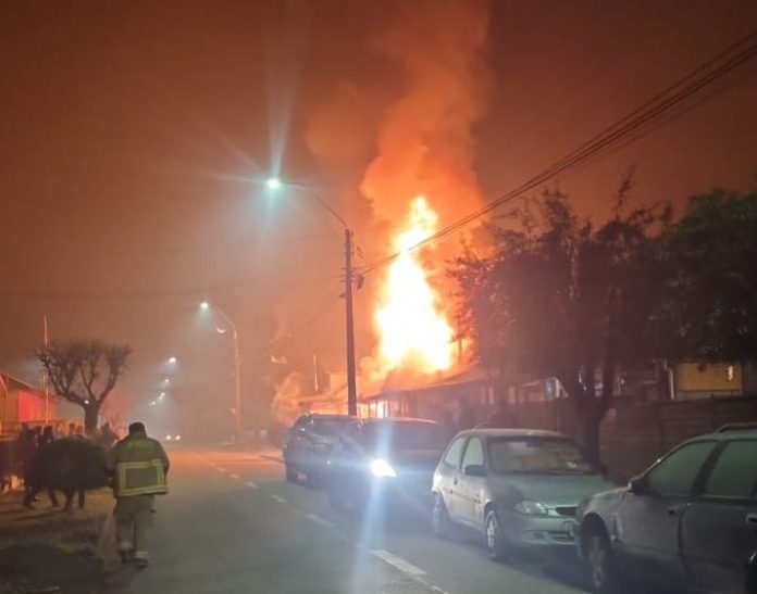 Un violento incendio registrado cerca de las 21:45 horas del domingo 29 de junio dejó como saldo una vivienda completamente destruida y daños parciales en una segunda casa, en el sector Los Coigues esquina Los Laureles, en la comuna de Río Bueno.
