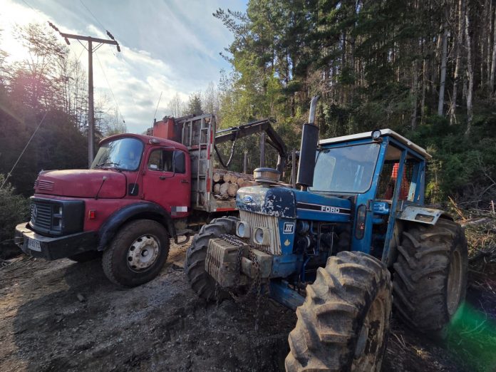 En el procedimiento se incautó un camión autocargante, un tractor, una camioneta y tres motosierras utilizadas para cometer el delito, lo que junto a la madera sustraída suma un avalúo superior a 34 millones de pesos.