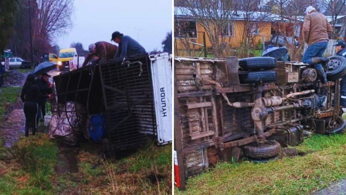 En el lugar, se constató el volcamiento de un camión 3/4 que terminó en la cuneta. Producto del accidente, el conductor del vehículo quedó atrapado en su interior.