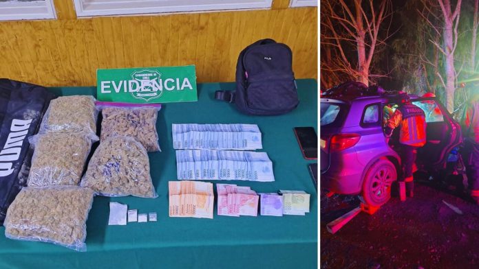 El procedimiento se desarrolló en la Ruta T-677, kilómetro 6, cuando el personal policial, a cargo del sargento segundo Fabián Molina Rivera y el cabo primero Carlos Castro Peña, realizaba un control vehicular. Al fiscalizar un automóvil marca Suzuki Grand Vitara, sus ocupantes intentaron darse a la fuga, iniciándose un seguimiento controlado.
