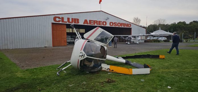 La tarde de este sábado, un helicóptero particular perdió el control y cayó desde baja altura en dependencias del club aéreo de Osorno. Pese a lo aparatoso del accidente, la piloto y su acompañante resultaron ilesos y se retiraron por sus propios medios. La investigación quedó a cargo de la Dirección General de Aeronáutica Civil.