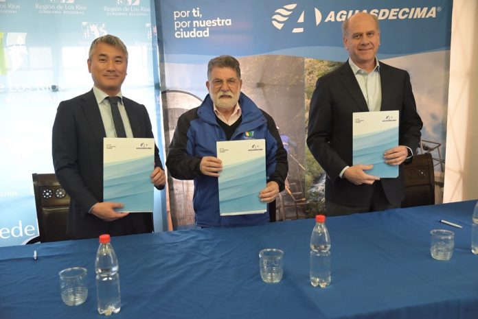 La firma del acuerdo se efectuó en una ceremonia este miércoles 10 de septiembre en la Casa Prochelle de Isla Teja, y fue suscrito por el gobernador regional, Luis Cuvertino Gómez; el presidente del holding Aguas Nuevas, Hikaru Sanuki; y el gerente general de Aguas Nuevas y Aguas Décima, Salvador Villarino Krumm.