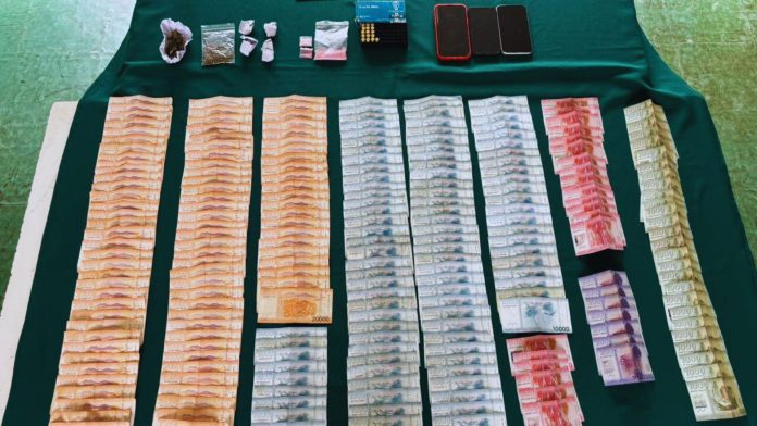 Durante la fiscalización, los funcionarios incautaron diversas especies vinculadas al ilícito, entre ellas municiones, drogas sintéticas como Tusi, marihuana, más de dos millones de pesos en efectivo y tres teléfonos celulares, los que fueron retirados de circulación.